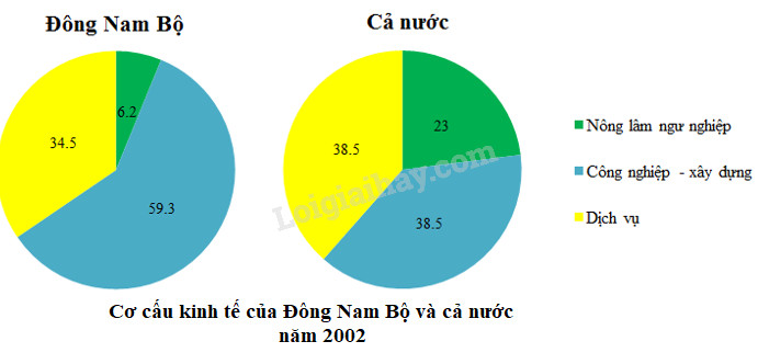 Dựa vào số liệu bảng 32.1 về “Cơ cấu kinh tế vùng Đông Nam Bộ và cả nước, năm 2002 (%)” trong SGK, em hãy: