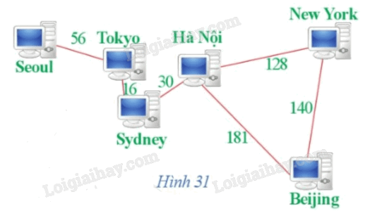 Hình 31 biểu diễn mạng lưới máy chủ và tốc độ truyền dữ liệu (đơn vị: Megabit/ giây, kí hiệu là Mbps) giữa một số thành phố. Vẽ một đồ thị sử dụng điểm, đường để biểu diễn mạng lưới đó.