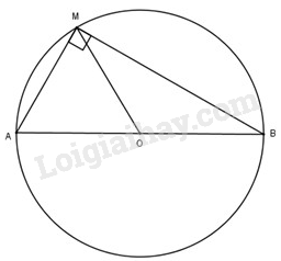 Gọi \(O\) là trung điểm đoạn thẳng \(AB\), vì tam giác \(AMB\) vuông tại \(M\) nên trung tuyến \(MO\) bằng nửa cạnh huyền, tức \(MO = {AB\over2} = R\).