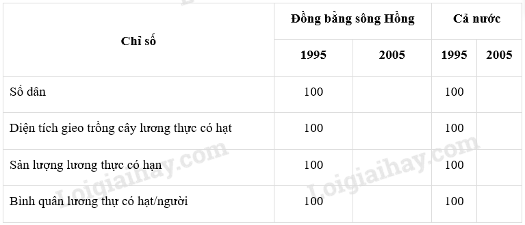 Giải bài 1 trang 60 tập bản đồ Địa lí 12, Từ số liệu ở bảng 34 của bài 34 trong SGK Địa lí 12, em hãy: Tính tốc độ tăng trưởng của các chỉ số đã cho trong bảng 34 và điền tiếp vào bảng dưới đây.