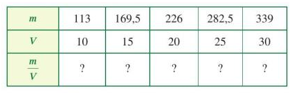 Các giá trị tương ứng của khối lượng m (g) và thể tích V (cm3) được cho bởi bảng sau:
