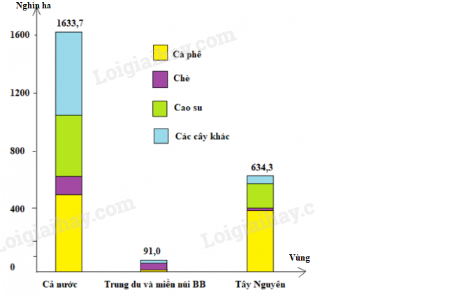 – Tây nguyên có tổng diện tích cây công nghiệp lâu năm lớn (thứ hai cả nước ), khoảng 1/3 cả nước, gấp 7 lần Trung du Bắc Bộ.