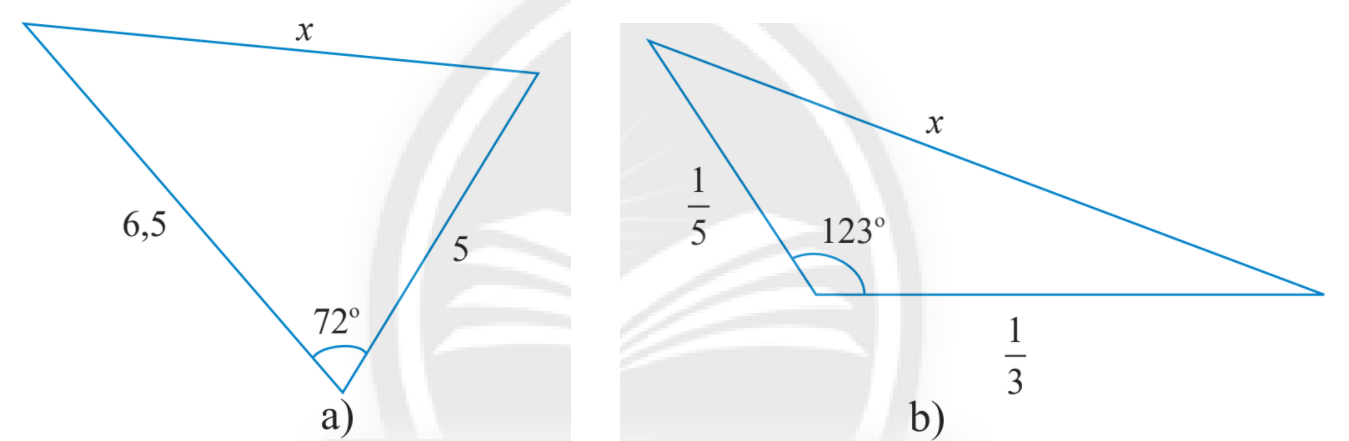 {{x^2} = 6,{5^2} + {5^2} – 2.6,5.5.\cos {{72}^o} \approx 47,16}\\