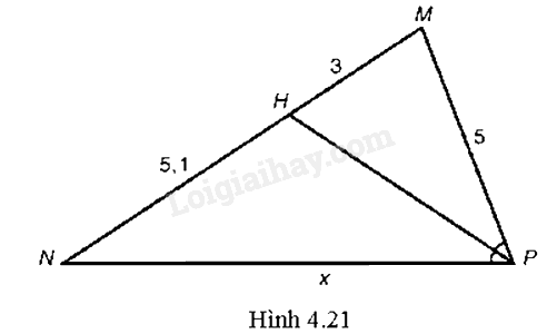 Suy ra \(\frac{{MH}}{{NH}} = \frac{{MP}}{{NP}}\) (tính chất đường phân giác trong tam giác), hay \(\frac{3}{{5,1}} = \frac{5}{x}\)