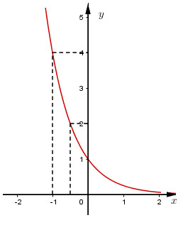 Đồ thị hàm số nằm hoàn toàn về phía trên trục hoành, cắt trục tung tại điểm \((0; 1),\) đi qua điểm \((1; \dfrac{1}{4}\)) và qua các điểm \((-\dfrac{1}{2}; 2), (-1;4).\)