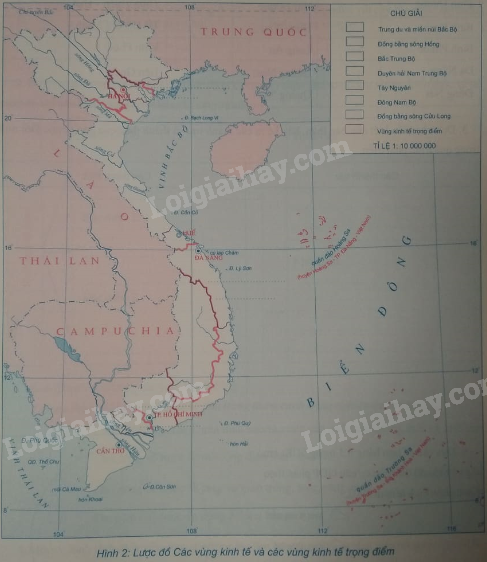 Dựa vào lược đồ 6.2 trong SGK và đối chiếu với lược đồ dưới đây, em hãy: – Tô màu vào chú giải và lược đồ để thấy rõ các vùng kinh tế của nước ta. – Trải nét lên lược đồ vừa tô để thể hiện ba vùng kinh tế trọng điểm.