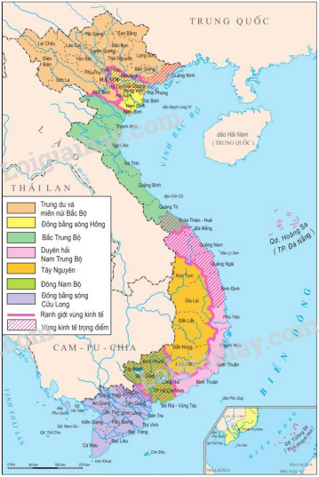 – Dựa vào lược đồ đã tô màu, điền tên và đánh số (I, II, III) các vùng kinh tế trọng điểm lên lược đồ.