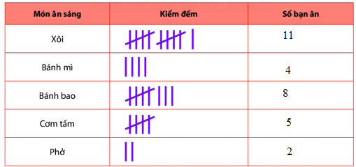 Đếm số gạch ở cột hai sau đó điền số tương ứng sang cột 3.