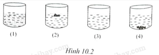 Lần lượt cho bốn chất rắn vào bốn cốc nước, khuấy đều. Kết quả thu được ở bốn cốc như sau.