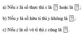a) Nếu x là số thực thì xsố hữu tỉ  hoặc là số vô tỉ;