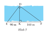 Người ta đo khoảng cách giữa hai điểm \(D\) và \(K\) ở hai bờ một dòng song (Hình 5). Cho biết \(KE = 90m,KF = 160m\). Tính khoảng cách \(DK\).