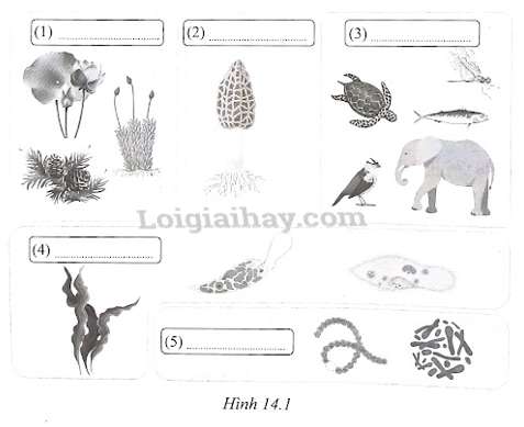 Chú thích tên 5 giới sinh vật vào hình 14.1.