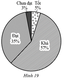 Kết quả học tập Học kì I của học sinh lớp 7A được đánh giá ở bốn mức: Tốt, Khá, Đạt, Chưa đạt. Biểu đồ hình quạt tròn ở Hình 19 biểu diễn kết quả học tập Học kỉ I (tỉnh theo tỉ số phần trăm) của học sinh lớp 7A theo bốn mức trên