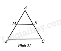 Hình 21 cho biết cạnh của tam giác đều \(ABC\) bằng 6 cm; \(M,N\) lần lượt là trung điểm các cạnh \(AB,AC\). Chỉ ra phát biểu sai trong các phát biểu sau: