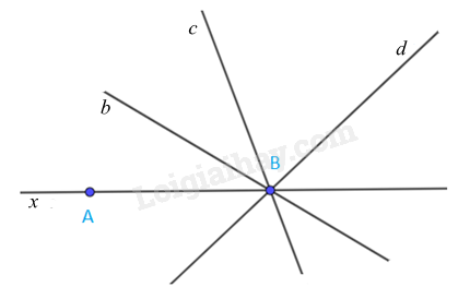 b) Qua B có thể vẽ được ba đường thẳng cắt đường thẳng x được không? Vẽ ba đường thẳng đó (nếu có)