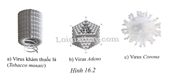 Hãy cho biết hình dạng của các virus được minh họa trong hình 16.2.