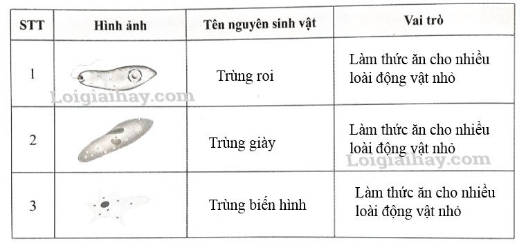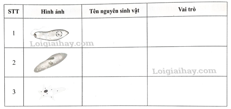 Viết tên nguyên sinh vật và vai trò của nguyên sinh vật tương ứng với mỗi hình ảnh minh hoạ trong bảng dưới đây.
