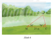 b) Dùng thước đo chiều dài cạnh \(DF\) của \(\Delta DEF\). Tính khoảng cách giữa hia điểm \(A\) và \(C\) ở hai bờ sông trong Hình 6.