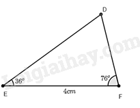 Quan sát Hình 6. Vẽ vào tờ giấy tam giác \(DEF\) với \(EF = 4cm,\widehat E = 36^\circ ,\widehat F = 76^\circ \).