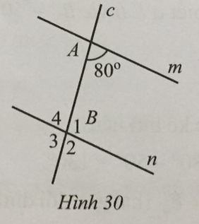 Ta có: m // n nên \(\widehat{B_4} = \widehat{B_2} = 80^\circ \) (hai góc so le trong và đồng vị với góc bằng 80°)