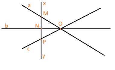 b) Đường thẳng xy cắt các đường thẳng a,b, c lần lượt tại M, N, P.