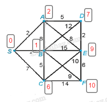 Đường đi ngắn nhất từ đỉnh S đến đỉnh F có độ dài là I(F) = 10 và đường đi là