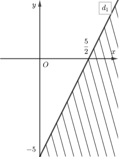 Chọn điểm \(O\left( {0;0} \right)\) không thuộc đường thẳng \({d_1}\) và thay vào biểu thức \(2x – y,\) ta được: \(2.0 – 0 = 0 < 5\).