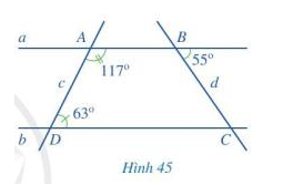 Quan sát Hình 45. a) Vì sao hai đường thẳng a và b song song với nhau? b) Tính số đo góc BCD.