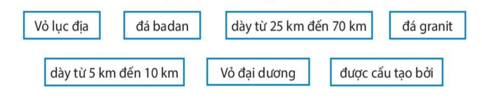 Từ các ô bên dưới, đặt hai câu có ý nghĩa về vỏ lục địa và vỏ đại dương.