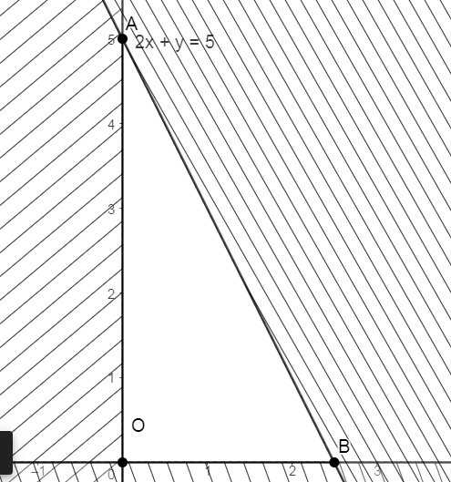Miền nghiệm là miền tam giác OAB (kể cả bờ là các đoạn thẳng OA, OB AB