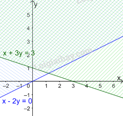 \(\left\{ \begin{array}{l}x – 2y > 0\\x + 3y < 3\end{array} \right.\)