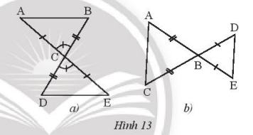 Hai tam giác trong hình 13a, 13b có bằng nhau không? Vì sao?