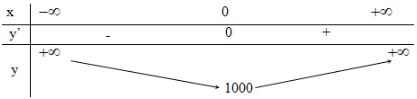 Ta có: \(y’= 4x^3 \Rightarrow  y’=0 \Leftrightarrow x = 0\).