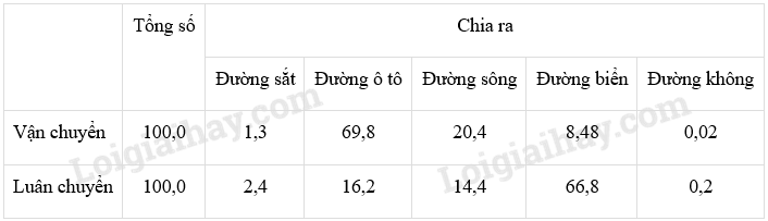 + Đường sắt đóng góp 2,4%; thấp nhất là đường hàng không (0,2%).
