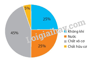 Dựa vào biểu đồ hình 19.1 trong SGK, điền vào chỗ trống tỉ lệ các thành phần chủ yếu trong đất: – Nước: – Chất hữu cơ: – Không khí: – Chất vô cơ: