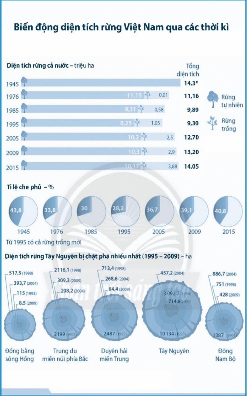 – Vùng có diện tích rừng bị che phủ nhiều nhất thời kì 1995 – 2009: Tây Nguyên.