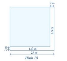 Một mảnh vườn có dạng hình vuông với chiều dài cạnh bằng 25m. Người ta để một phần của mảnh vườn làm lối đi rộng 2m như Hình 10, phần còn lại để trồng rau.