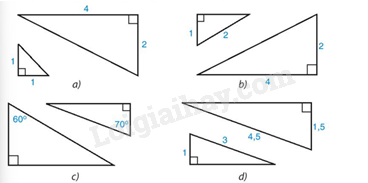 Cặp tam giác vuông trong hình a, b, c không đồng dạng.