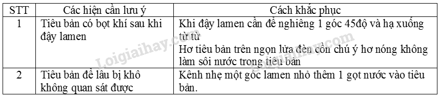 Trong quá trình làm tiêu bản, em cần chú ý điều gì? Hãy chia sẻ kinh nghiệm của em vào bảng dưới đây.