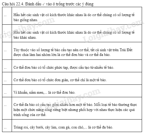 Đánh dấu ✓ vào ô trống trước các ý đúng