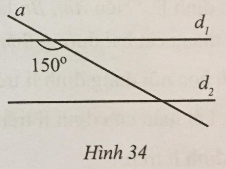 Quan sát Hình 34, biết \({d_1}\) // \({d_2}\) và góc tù tạo bởi hai đường thẳng a và đường thẳng \({d_1}\) bằng 150°. Tính góc nhọn tạo bởi đường thẳng a và đường thẳng \({d_2}\).