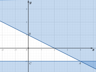 Phần không bị gạch (kể cả tia AB, AC) ở Hình 12 là miền nghiệm của hệ bất phương trình: