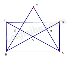 Cho tam giác \(ABC\) cân tại \(A\) có các đường trung tuyến \(BM,CN\) cắt nhau tại \(G\). Trên tia đối của tia \(GB,GC\) lần lượt lấy các điểm \(D,E\) sao cho \(GD = GB,GE = GC\). Tứ giác \(BEDC\) là hình gì? Vì sao?