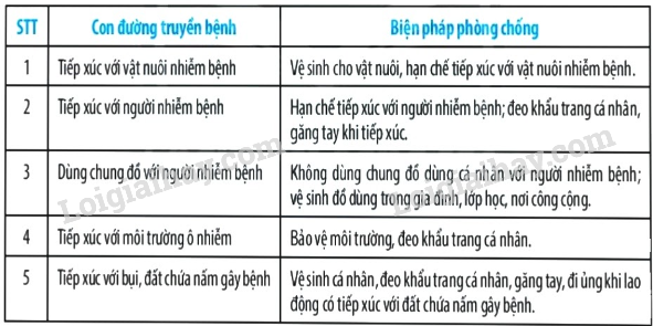 Hãy trình bày một số con đường lây truyền bệnh do nấm gây nên và biện pháp phòng bệnh bằng cách hoàn thành bảng sau:
