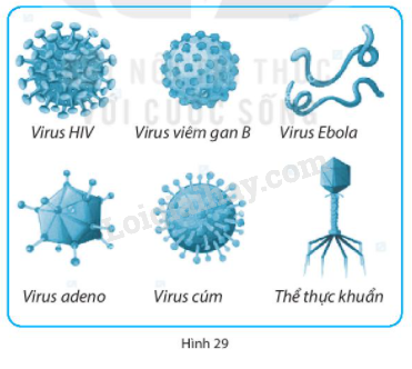 29.2. Quan sát các virus trong Hình 29, xếp tên các virus vào đúng nhóm hình dạng của chúng.
