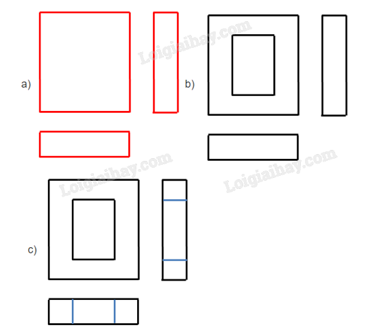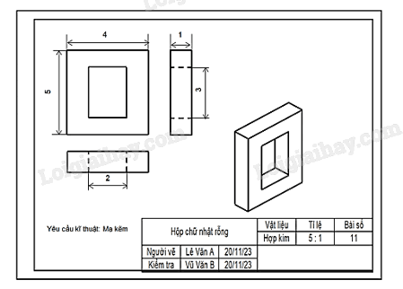 Bước 3: Lần lượt vẽ hình chiếu vuông góc của hình hộp chữ nhật bao bên ngoài vật thể, của khối hộp chữ nhật rỗng và của rãnh hộp chữ nhật.