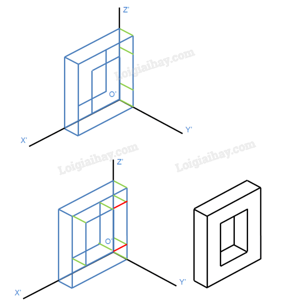 Bước 5: Từ ba hình chiếu vuông góc vừa vẽ, vẽ hình chiếu trục đo vuông góc đều của vật thể.