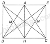 Tứ giác AHCE có: N là trung điểm của AC, N là trung điểm của EH nên AHCE là hình bình hành. Mà \(\widehat {AHC} = {90^0}\) nên AHCE là hình chữ nhật. Suy ra \(\widehat {AEC} = \widehat {ECH} = {90^0}\)