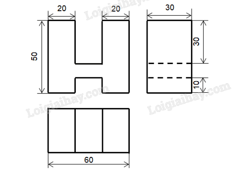 Vậy thể tích của giá chữ H là: 90 000 – 18 000 – 6 000 = 66 000 (mm3).