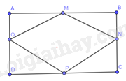 Cho hình chữ nhật \(ABCD\) và \(M,N,P,Q\) lần lượt là trung điểm các cạnh \(AB,BC,CD,AD\). Chứng minh rằng \(MNPQ\) là hình thoi.